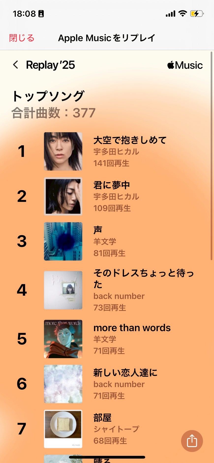 今年一番*. 佐々木さんと先日アップルミュージックで1番聞いたアーティスト、音楽を見せ合いました