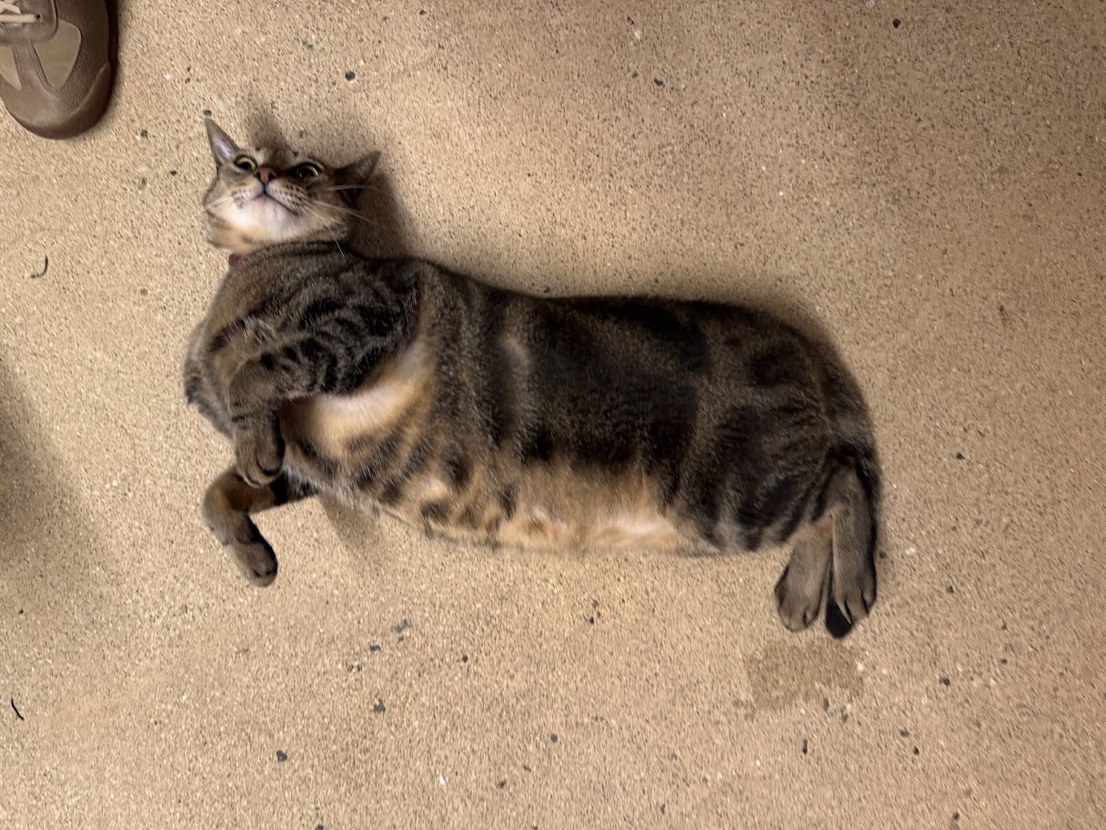 #お帰りの儀式をするネコ#玄関の土間で撫でろポーズ
