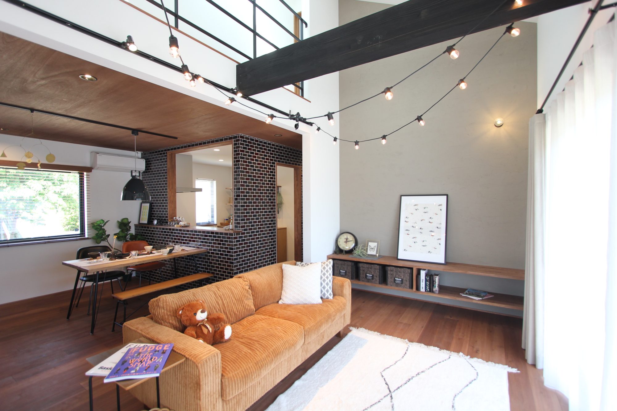 天窓から光が差し込むリビングは、家族がずっと一緒にいられる大切な場所に。ここにいるとゆっくり時が流れ毎日が心地いい。